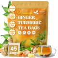 Premium Ginger Turmeric Tea Bags, Hand-made Blend of Ginger and Turmeric Herbal Tea, Eco-conscious Tea Bags. No Sugar, No Caffeine, No Gluten, Vegan.