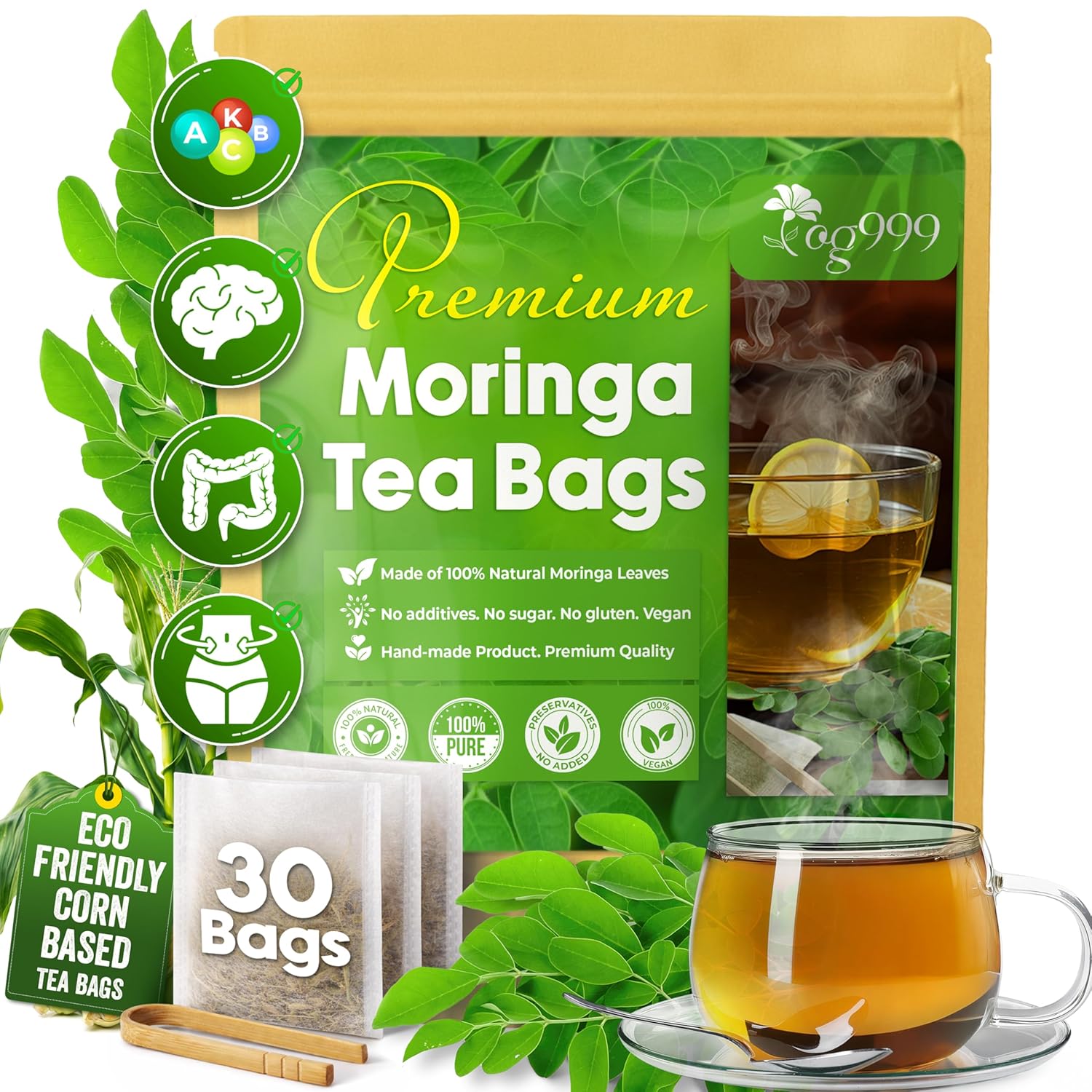 Moringa Leaf Tea Bags, 100% Natural & Pure from Moringa Leaves. Loose Leaf Moringa Herbal Tea. Moringa Leaf Tea. No Sugar, No Caffeine, No Gluten, Vegan