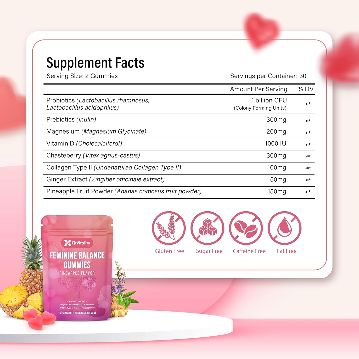 Premium Feminine Balance Gummies – Vaginal Probiotics & Support Digestive Health – Probiotics, Collagen Type II, Chasteberry, Vitamin D & Magnesium
