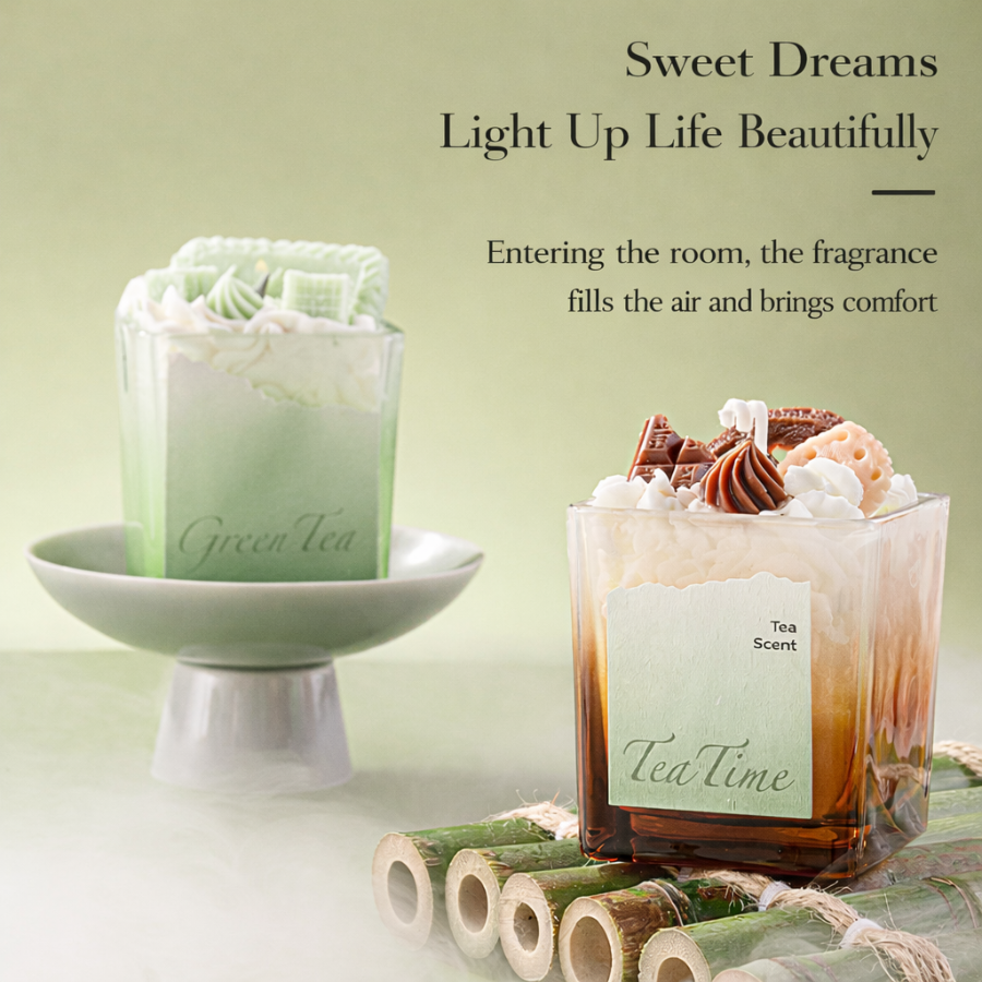 The cake-like appearance delights the eyes, while the tea fragrance becomes the soul of the space — as if stepping into a charming tea bakery filled with love and comfort.